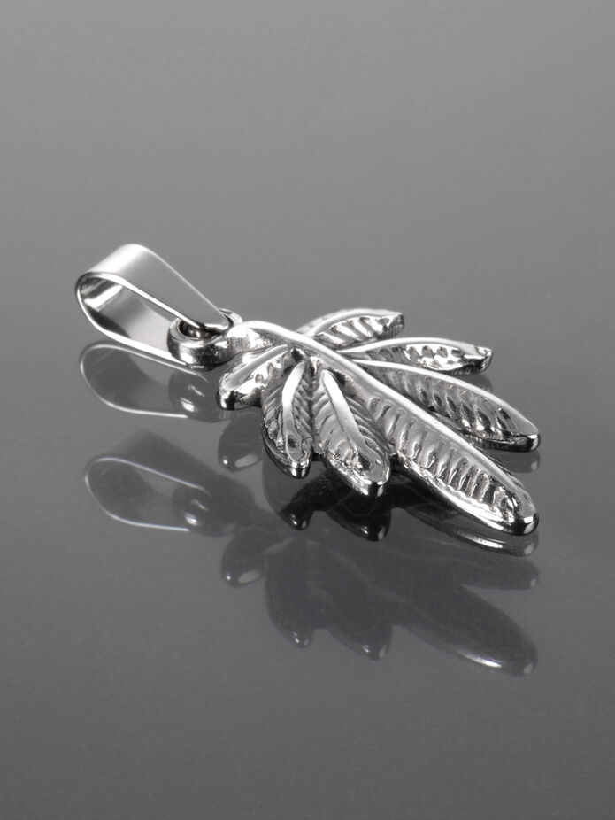 Krásný přívěsek z chirurgické oceli ve tvaru listu konopí je skvělým doplňkem ke každému outfitu, perfektně doladí a podtrhne nevšední vzhled každé ženy, ale i muže.