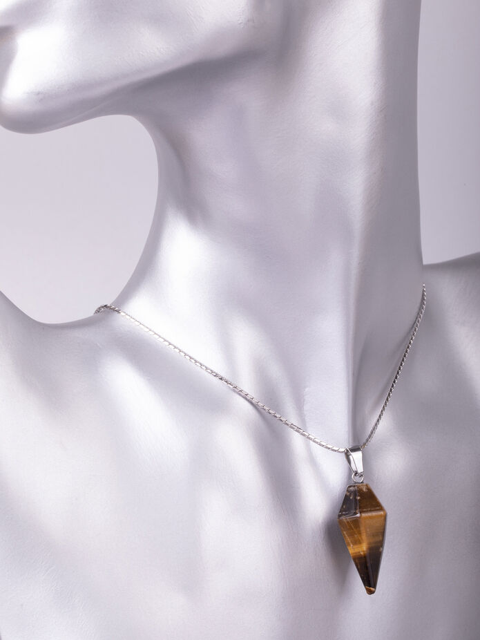 Luxusní amulet ve tvaru masivního kyvadla z tygřího oka může sloužit nejen jako kyvadlo, ale i jako přívěsek a tak být skvělým doplňkem k jakémukoliv outfitu. Skvěle doladí vzhled každé ženy či slečny.