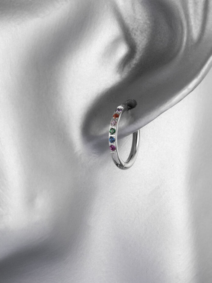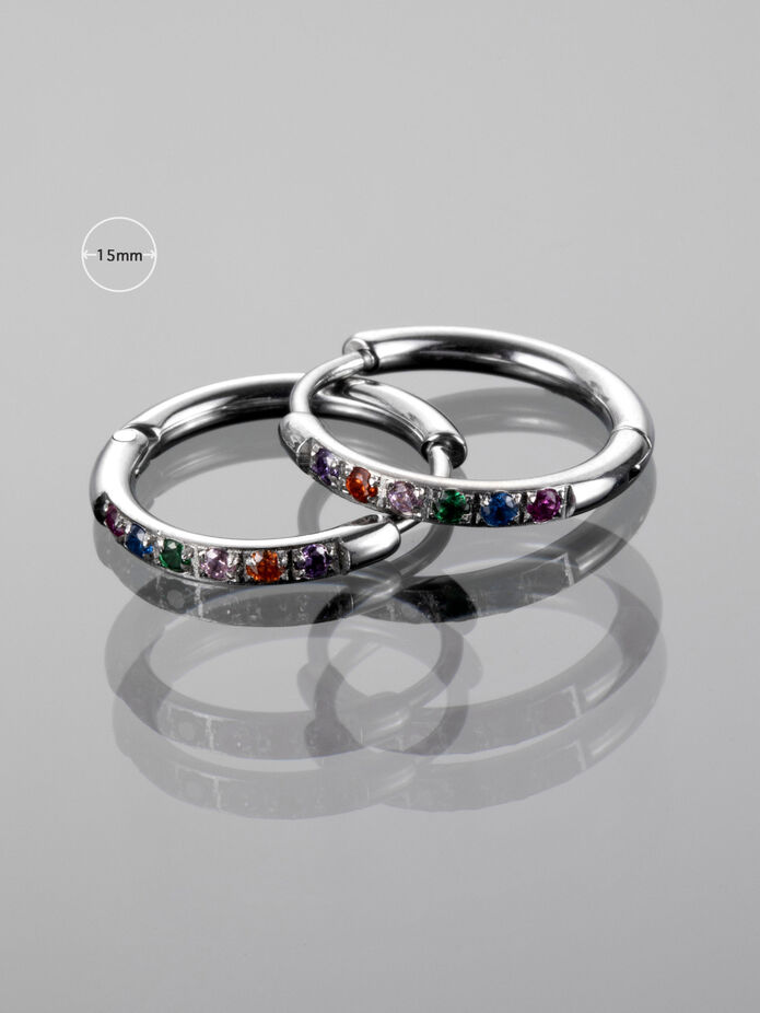 Luxusní kruhové náušnice z chirurgické oceli s barevnými krystaly jsou skvělým doplňkem k jakémukoliv outfitu.