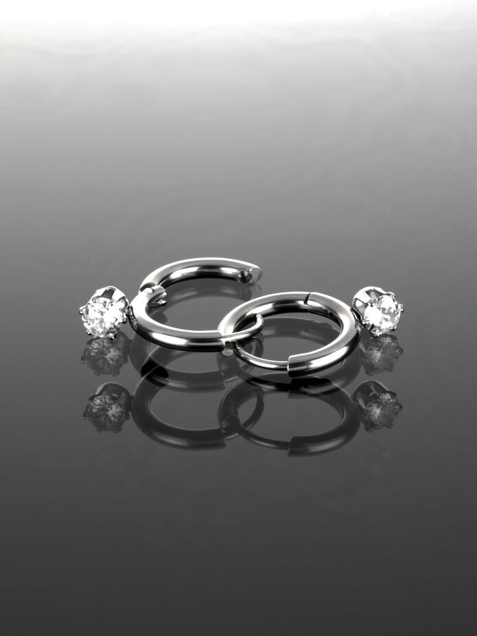 Luxusní kruhové náušnice z chirurgické oceli s čirými krystaly jsou skvělým doplňkem k jakémukoliv outfitu. Šířka náušnic je 0,2 cm, průměr je 1,2 cm. Na náušnicích jsou ze spodu připevněny čiré krystaly o průměru 0,5 cm. Celková délka náušnic je 1,7 cm. Zapínání je na francouzský patent, tento typ zapínání skvěle drží a tak náušnice samovolně nevypadnou.