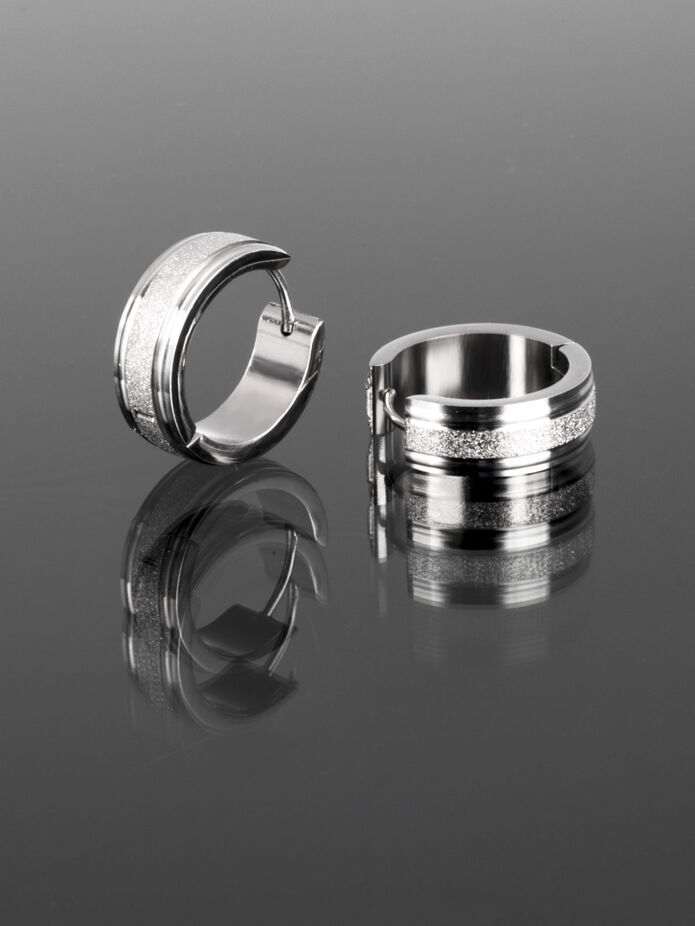 Luxusní masivní kruhové náušnice z chirurgické oceli s rytými detaily jsou skvělým doplňkem k jakémukoliv outfitu. Rytý detail náušnic tvoří uprostřed třpytivý efekt. Šířka náušnic je 0,7 cm, průměr je 2 cm. Zapínání je na francouzský patent, tento typ zapínání skvěle drží a tak náušnice samovolně nevypadnou.