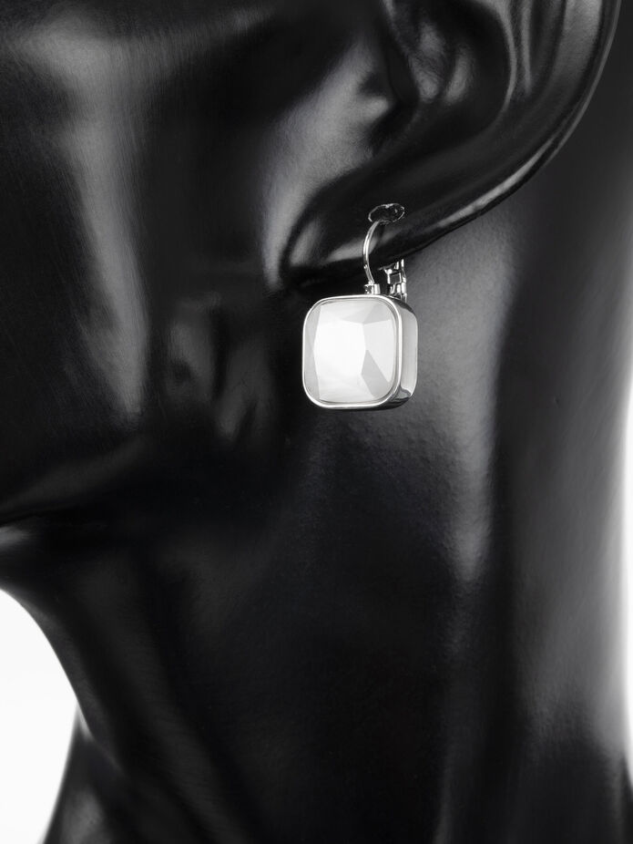 Luxusní masivní náušnice z chirurgické oceli s výrazným bílým kočičím okem ve tvaru čtverce jsou skvělým doplňkem k jakémukoliv outfitu. Délka náušnic je cca 2,4 cm, délka hrany je 1,3 cm. Zapínání je na dámský patent, tento typ zapínání skvěle drží a tak náušnice samovolně nevypadnou. Náušnice stříbrné barvy jsou zdobeny masivním bílým kočičím okem ve tvaru čtverce, zpracování působí opravdu vkusně a nadčasově.