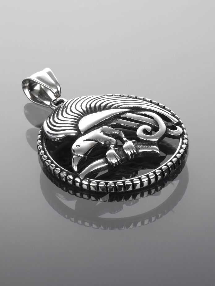 Luxusní masivní přívěsek ve tvaru kruhu s motivem Fénix z chirurgické oceli je skvělým doplňkem ke stylovému outfitu.