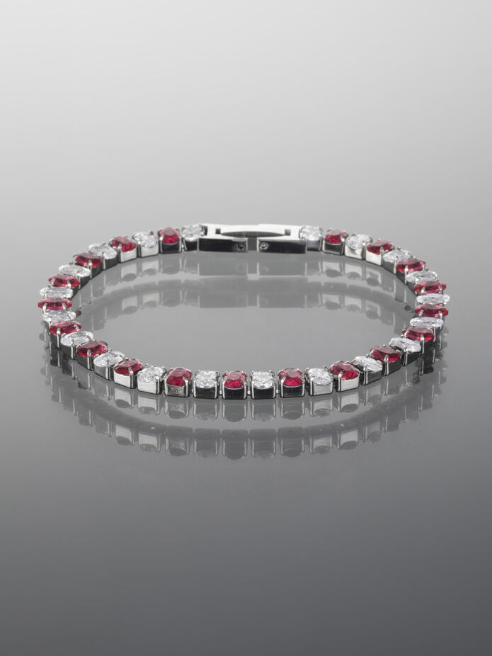 Luxusní náramek z chirurgické oceli s čirými a červenými oválnými krystaly je skvělým doplňkem k jakémukoliv outfitu.