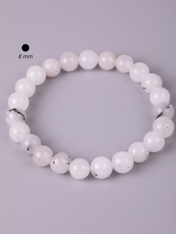 Obvod náramku je cca 19 cm, průměr korálků je cca 0,8 cm. Korálky minerálů jsou navléknuty na pružné gumičce, tento typ náramku skvěle drží a samovolně nespadne. Náramek je zhotoven z šedých korálků achátu.