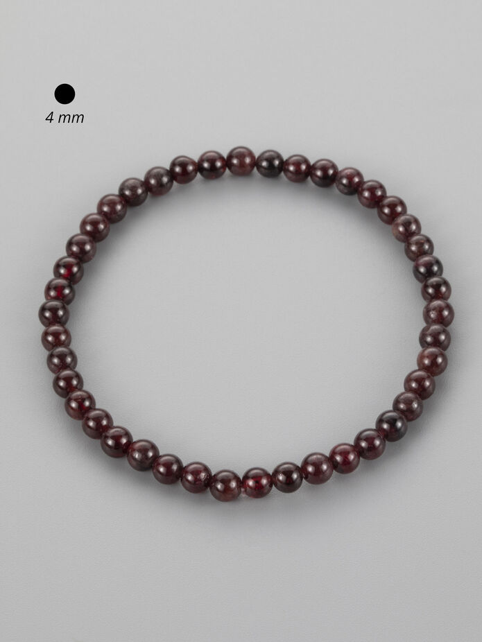 Krásný náramek z korálků granátu je skvělým doplňkem k jakémukoliv outfitu. Korálky o průměru 0,4 cm jsou navlečeny na elastanové niti, díky které je náramek velice pružný, dobře drží na ruce a tak samovolně nesklouzne. Obvod náramku je 18 cm. Je vhodný na všední nošení, ale také jako doplněk k šatům či ke kostýmku na společenské události. Díky ,,višňovému'' zbarvení kuliček působí velice výrazně a elegantně. Na světle se náramek na ruce lehce leskne a dodá ženě eleganci a šarm. Náramek je vhodným doplňkem pro ženy s citem pro eleganci a oblibou výraznějších šperků. Jeho léčivé účinky ocení každá žena se zájmem o ezoteriku a alternativní léčbu.