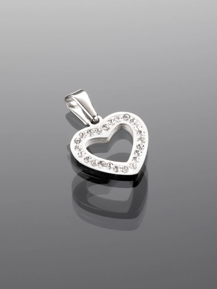 Luxusní přívěsek ve tvaru drobného srdíčka s drobnými čirými krystaly z chirurgické oceli je skvělým doplňkem k jakémukoliv outfitu.