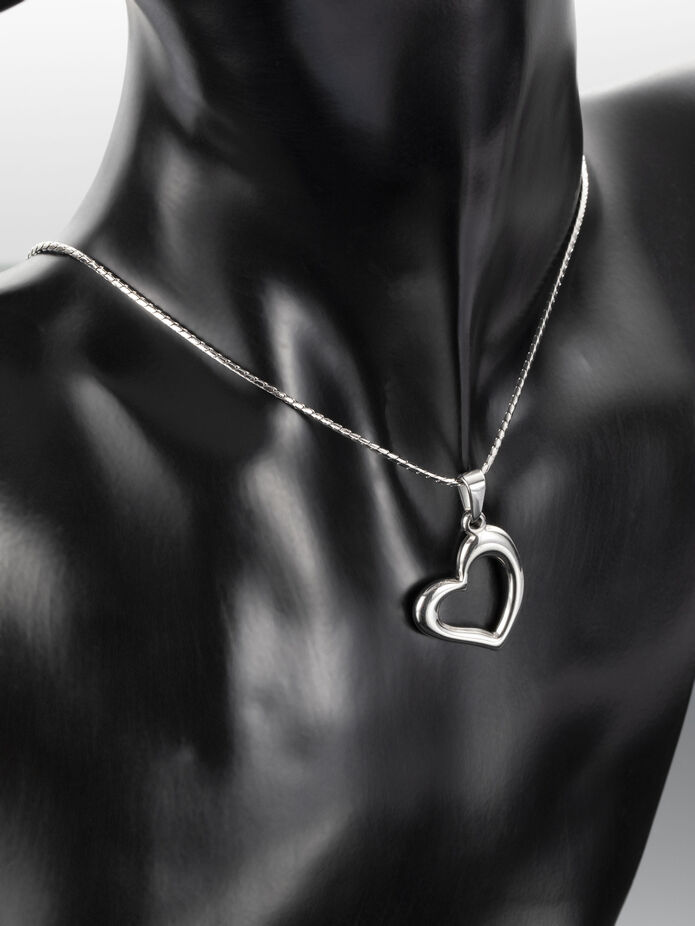Luxusní přívěsek ve tvaru moderního srdce z chirurgické oceli je skvělým doplňkem k jakémukoliv outfitu.