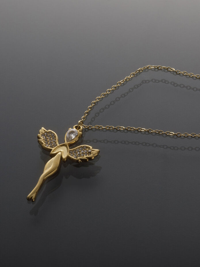 Překrásný řetízek z leštěné chirurgické oceli s přívěskem ve tvaru anděla, který je zdoben krystalky, je skvělým doplňkem k jakémukoliv outfitu. Andělská křídla vás ochrání na cestě životem a přinesou vám klid, lásku a štěstí. Udělejte si i vy radost tímto zajímavým doplňkem!