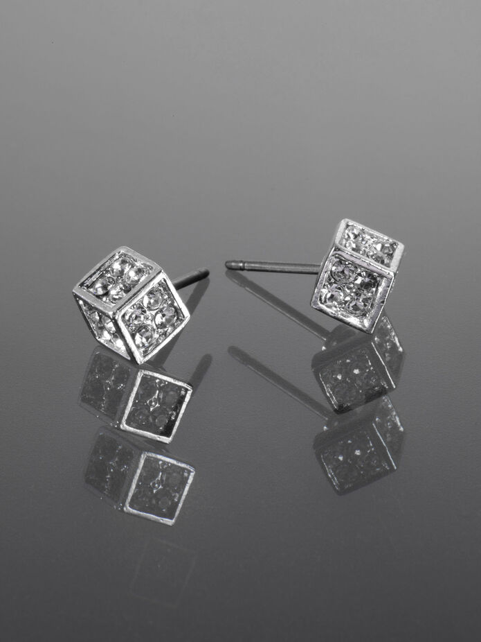 Tyto něžné náušničky si zamilujete! Jsou velmi lehké a svou velikostí vhodné pro dívky i dámy. Náušnice jsou z obecného kovu a mají osazení zirkony, svým vzhledem působí jako krychle. Náušničky mají zapínání na puzetku. Udělejte si i vy radost s tímto stylovým doplňkem!