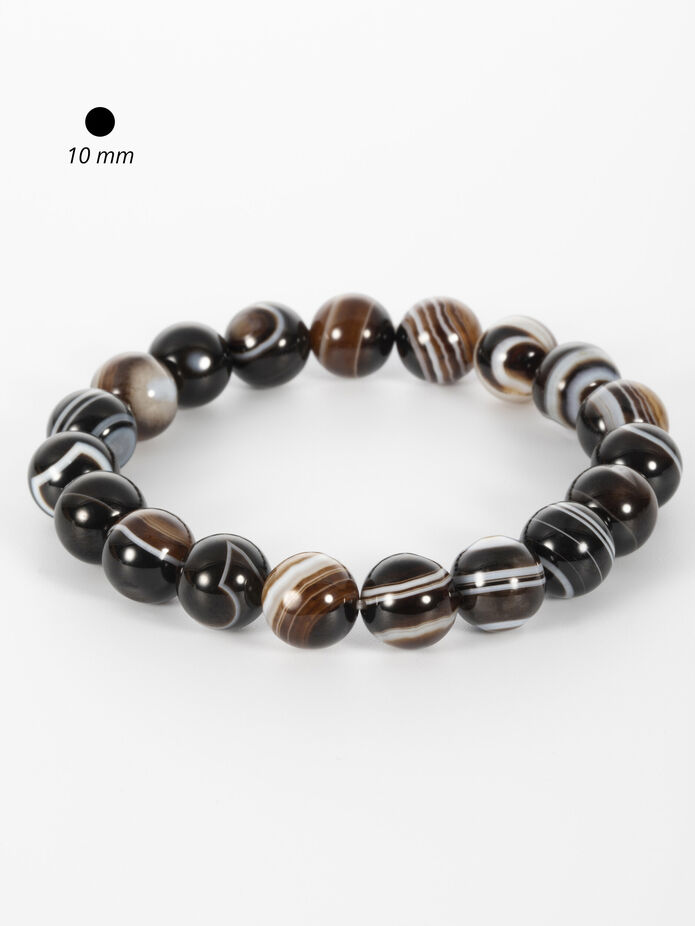 Obvod náramku je cca 19 cm, průměr korálků je cca 1 cm. Korálky minerálů jsou navléknuty na pružné gumičce, tento typ náramku skvěle drží a samovolně nespadne. Náramek je zhotoven z hnědých korálků achátu.