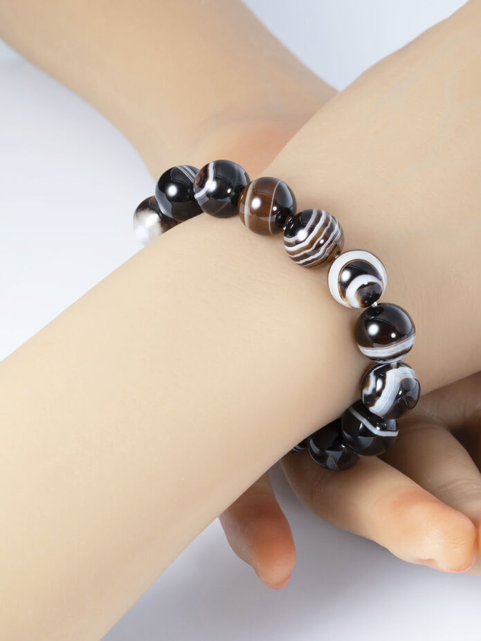 Krásný masivní náramek z korálků achátu je skvělým doplňkem ke každému outfitu, perfektně doladí a podtrhne nevšední vzhled každé dámy či slečny.