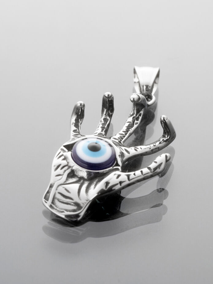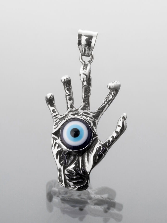 Stylový přívěsek z chirurgické oceli v podobě ruky s okem, který každého zaujme na první pohled. Potěší také jako milý dárek pro vaše blízké.