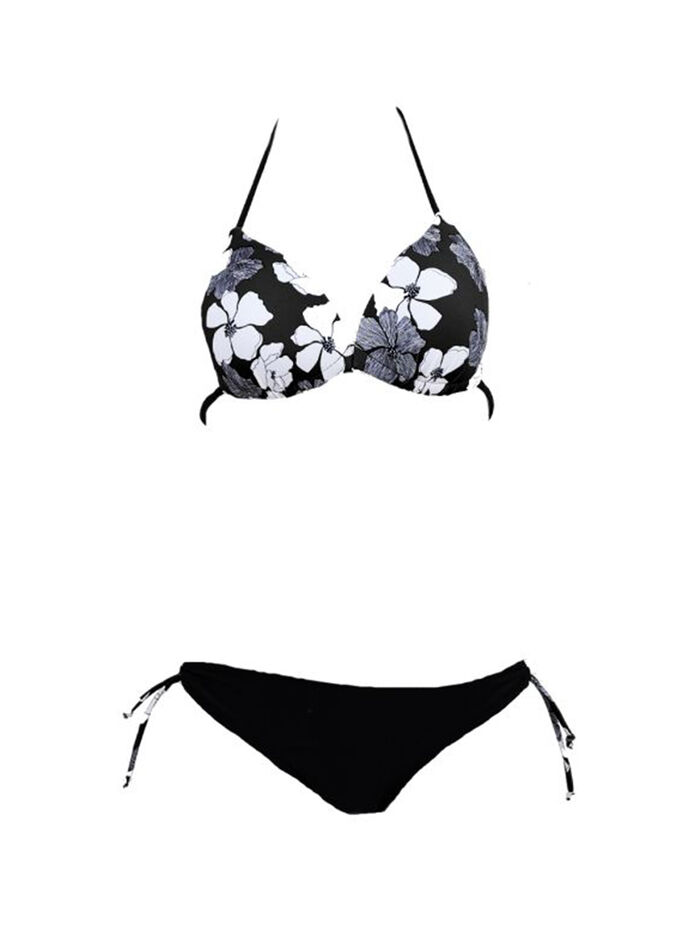 Modera dámské bikiny s trojúhelníkovou podprsenkou vzor květy černá