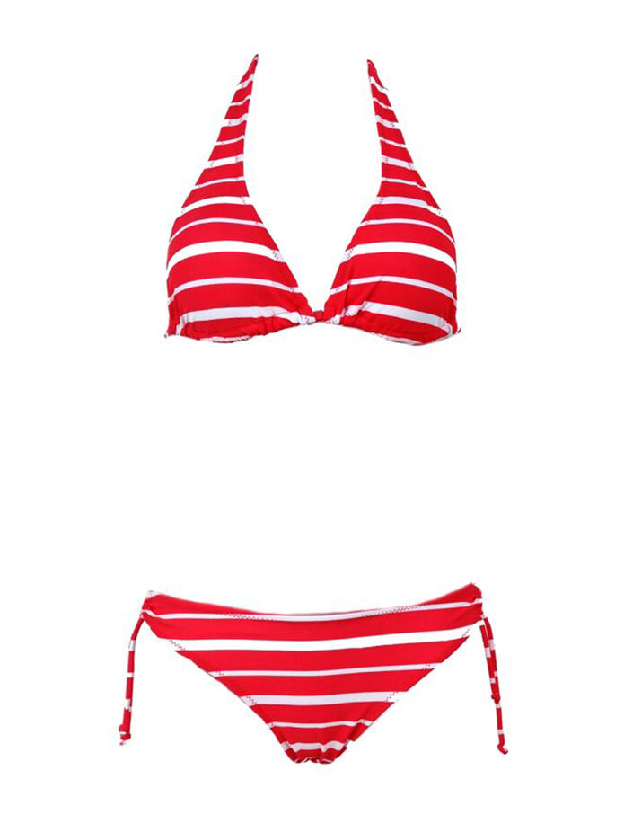Hledáte dokonalé dvoudílné plavky přesně pro vás? Bikiny, které jsou současně elegantní i osobité? Pak jste na tom správném místě! Tyto plavky mají zajímavě navržený troúhelníkový horní díl se zavazováním za krk a na zádech. Horní díl svým vypracováním způsobí, že vždy vyniknete a budete se cítit komfortně. Nejvíce však zaujme veselý vzorek plavek, který vás celou rozzáří. Proužky prostě vedou! Udělejte si i vy radost těmito plavkami vhodnými ke koupání i odpočinku na pláži, či u rybníka.