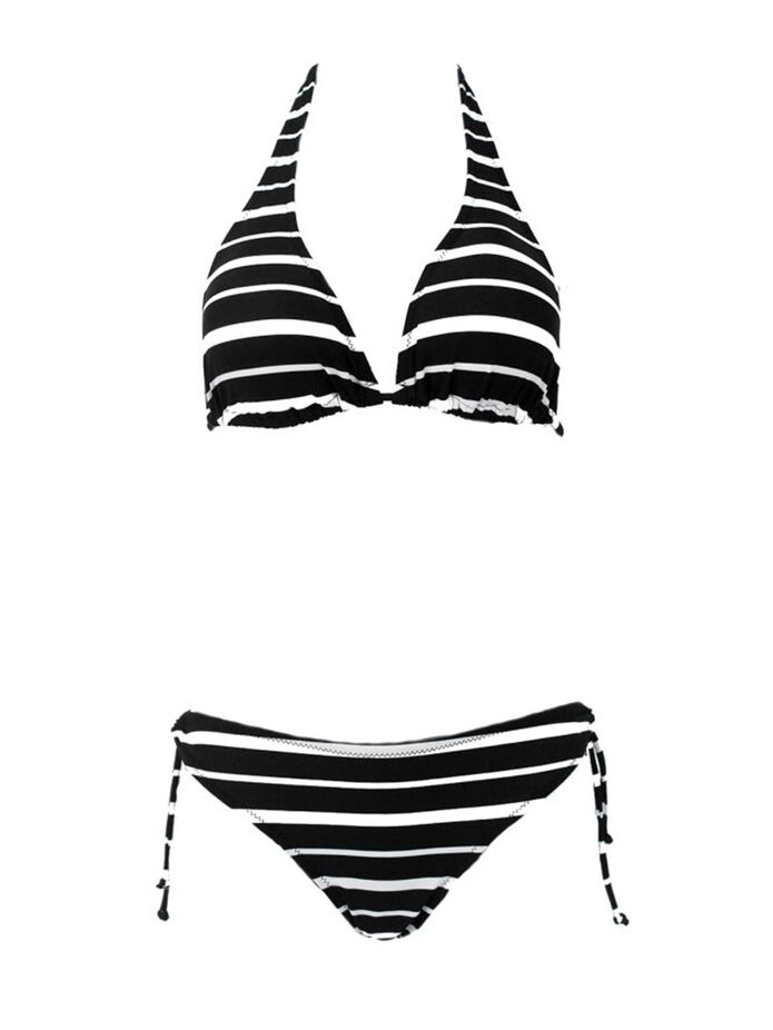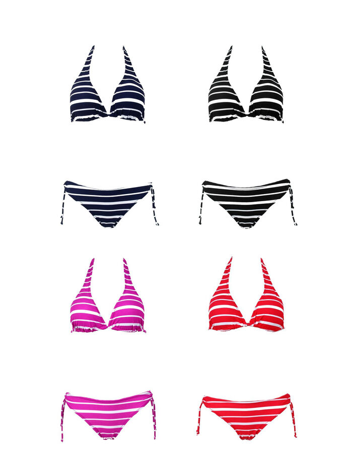 Dámské bikiny s pevnou podprsenkou a středně vysokými kalhotkami s pruhy. Udělejte si radost stylovými plavkami, ve kterých se budete cítit dobře! Skvělé na plaváni, ale zejména na opalování!