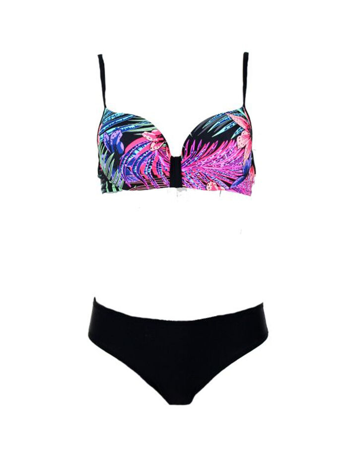 Dámské bikiny s pevnou podprsenkou s květy a středně vysokými kalhotkami.  Udělejte si radost stylovými  plavkami, ve kterých se budete cítit dobře! Skvělé na plaváni, ale zejména na opalování!