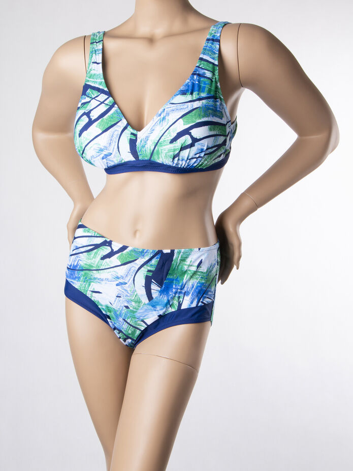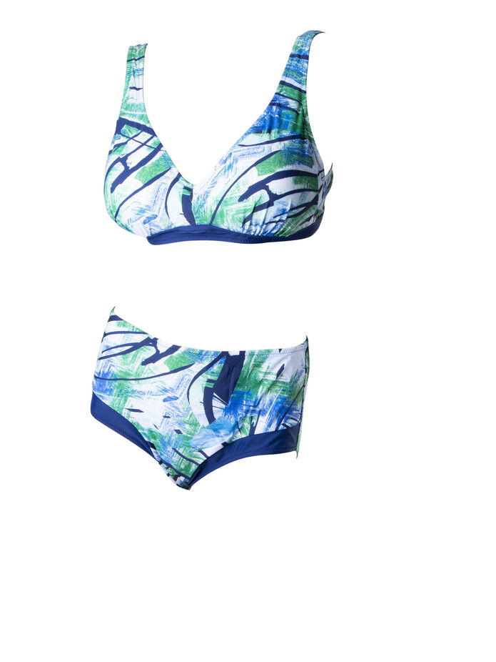 Máte problém najít plavky, ve kterých se cítíte pohodlně a zároveň stylově? Pak hledáte na tom pravém místě! Tyto dvoudílné plavky pro plnoštíhlé mají krásný zeleno-modrý vzor. Košíčky jsou s výstuží pro extra podporu. Kalhotky mají vysoký pas, pro krásné vytvarování těla a ramínka mají upravitelnou délku. Udělejte si i vy radost s těmito stylovými plavkami, ve kterých se budete cítit pohodlně.