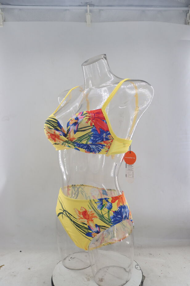 Hledáte dokonalé dvoudílné plavky přesně pro vás? Bikini,které jsou současně elegantní i osobité? Pak jste na tom správném místě! Tyto plavky mají troúhelníkový horní díl se zavazováním za krk a na zádech. Horní díl svým vypracováním způsobí, že vždy vyniknete a budete se cítit komfortně. Spodní díl plavek zdobí šňůrky na bocích. Nejvíce však zaujme veselý vzorek plavek, který vás celou rozzáří. Udělejte si i vy radost těmito plavkami, vhodnými ke koupání i odpočinku na pláži, či u rybníka.