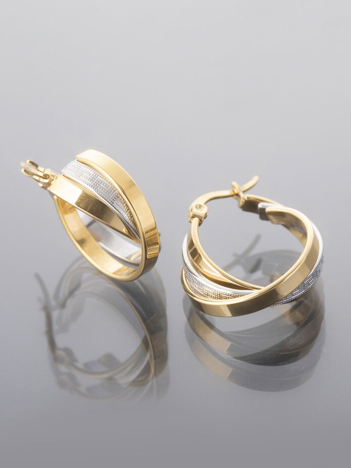 Objevte jedinečné kouzlo těchto nápadných, ale přesto elegantních náušnic, které zaujmou svým moderním designem a precizním zpracováním. Jsou vyrobené z leštěné chirurgické oceli ve zlaté a stříbrné barvě, což jim dodává elegantní vzhled a zároveň zajišťuje vysokou odolnost proti poškrábání i ztrátě lesku.