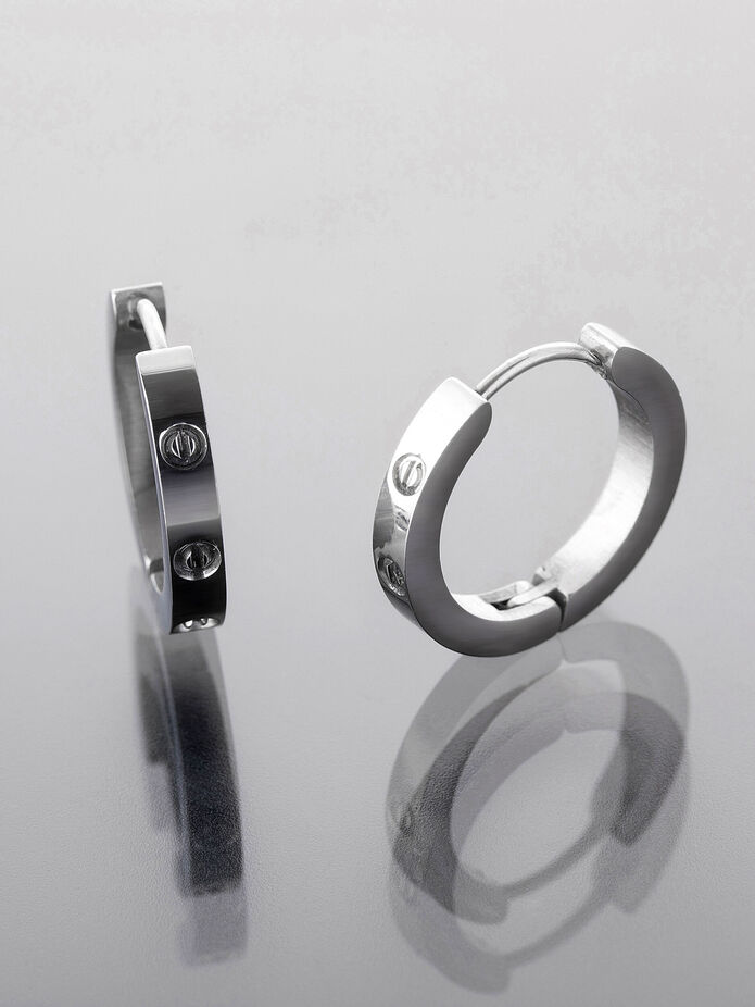 Jsou vyrobeny z leštěné chirurgické oceli, která je hypoalergenní, odolná proti poškrábání a stálobarevná – ideální volba i pro citlivou pokožku. S průměrem Ø 1,8 cm si jistě najdou místo ve vaší sbírce módních doplňků.