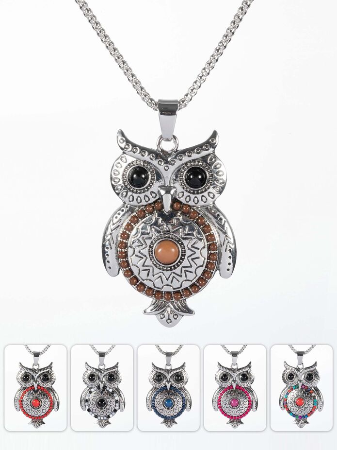 Tento stylový náhrdelník si jednoduše zamilujete! Náhrdelník má poměrně dlouhý řetízek se zapínáním na karabinku. Přívěsek je v podobě sovy, která je osazena korálky a je na výběr v různých barvách. Celý šperk je ze stříbrného obecného kovu. Udělejte si i vy radost tímto kouzelným kouskem!