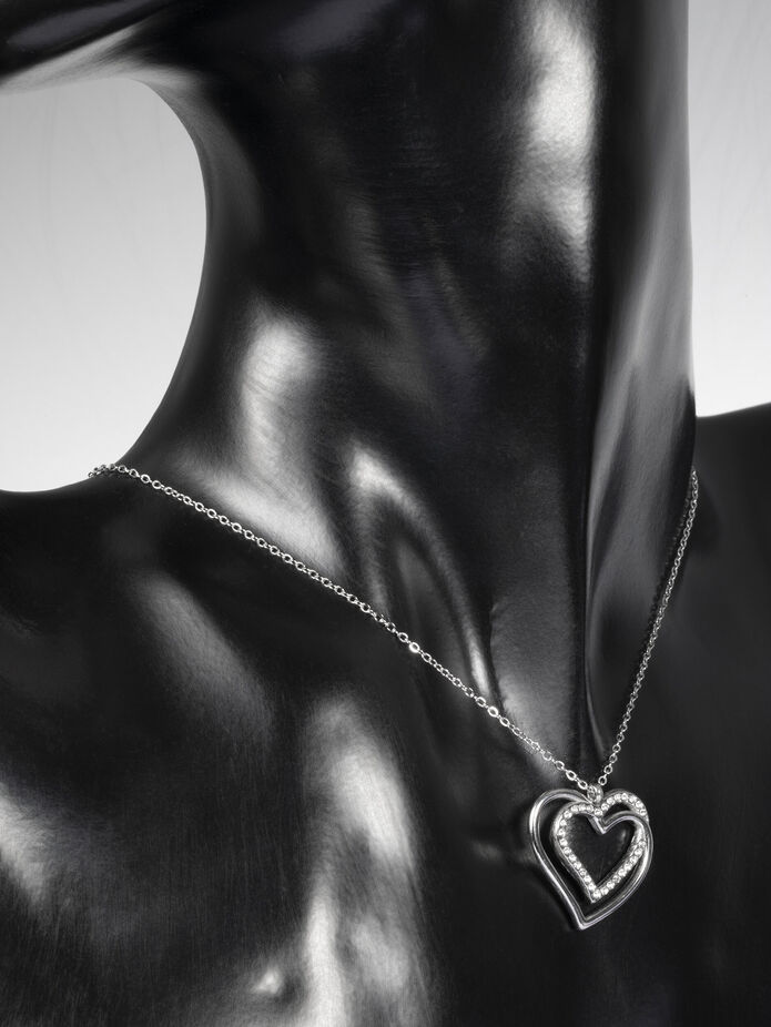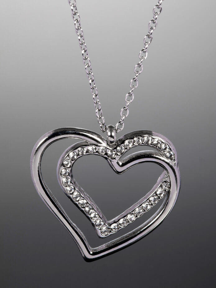 Luxusní náhrdelník z chirurgické oceli s propojenými srdíčky s drobnými čirými krystaly je skvělým doplňkem k jakémukoliv outfitu. Délka náhrdelníku je nastavitelná cca od 40 do 45 cm, rozměry přívěsku jsou 2 x 2,1 cm. Zapínání je na karabinku, tento typ zapínání skvěle drží a tak náhrdelník samovolně nespadne. Náhrdelník je tvořen jemným řetízkem stříbrné barvy, který je zdoben přívěskem ve tvaru propojených srdcí, menší z nich je zdovbeno drobnými čirými krystaly, zpracování působí opravdu vkusně a nadčasově.