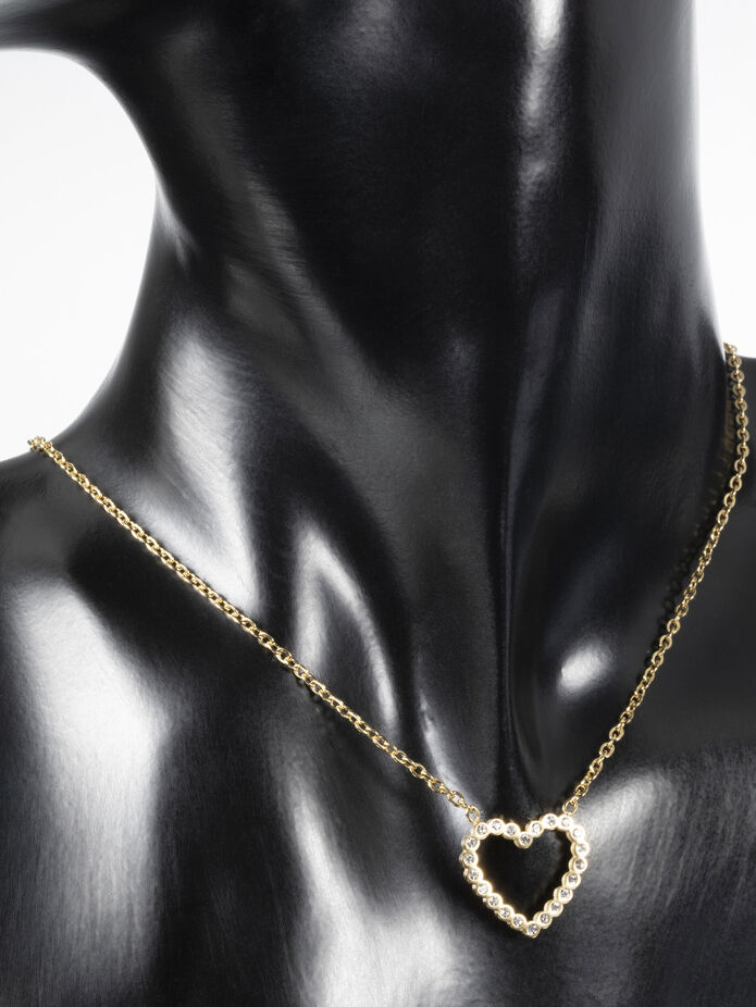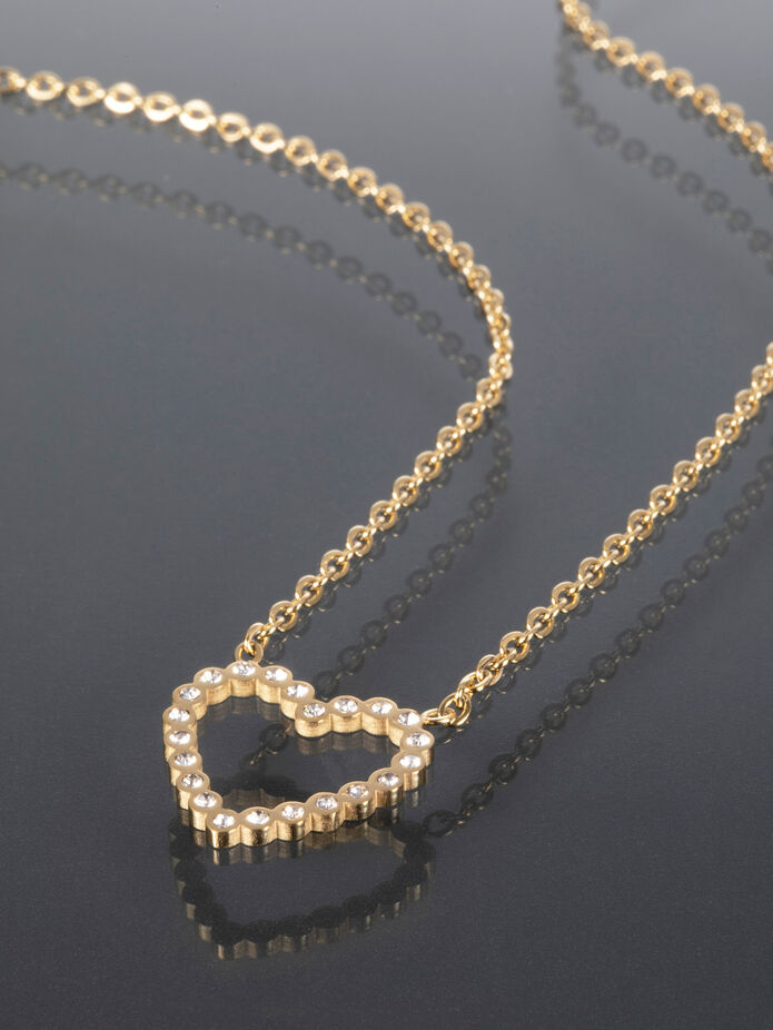 Luxusní náhrdelník z chirurgické oceli zlaté barvy se srdíčkem s drobnými čirými krystaly je skvělým doplňkem k jakémukoliv outfitu.