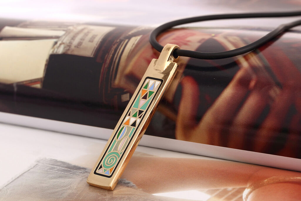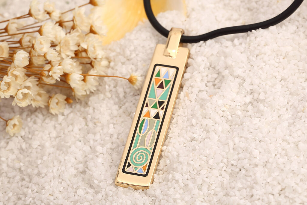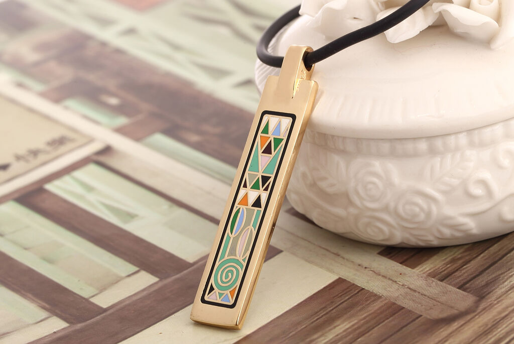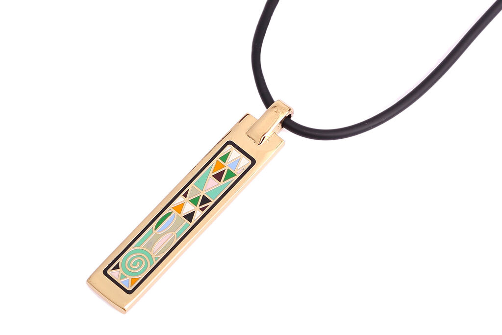 Náhrdelník zlatý obdélník s prvky kubismu vícebarevná