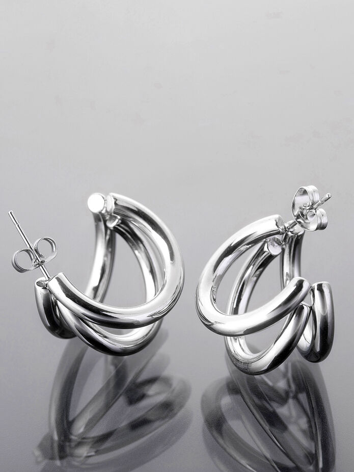 Moderní, elegantní náušnice v kruhovém tvaru. Ze tří proudů oceli.