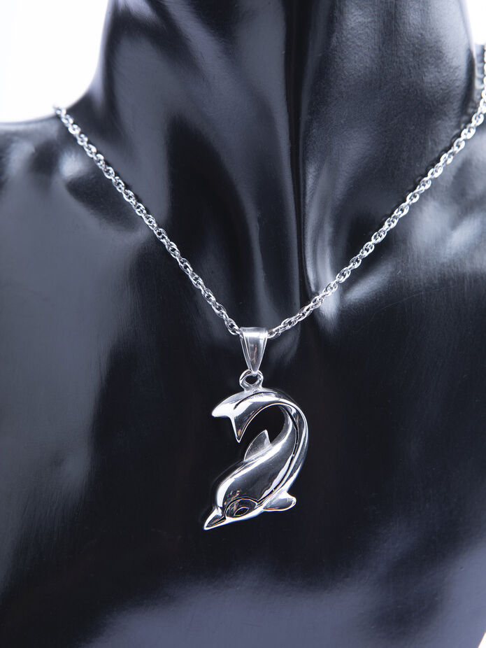 Stylový nápadný přívěsek z chirurgické oceli ve tvaru delfína.