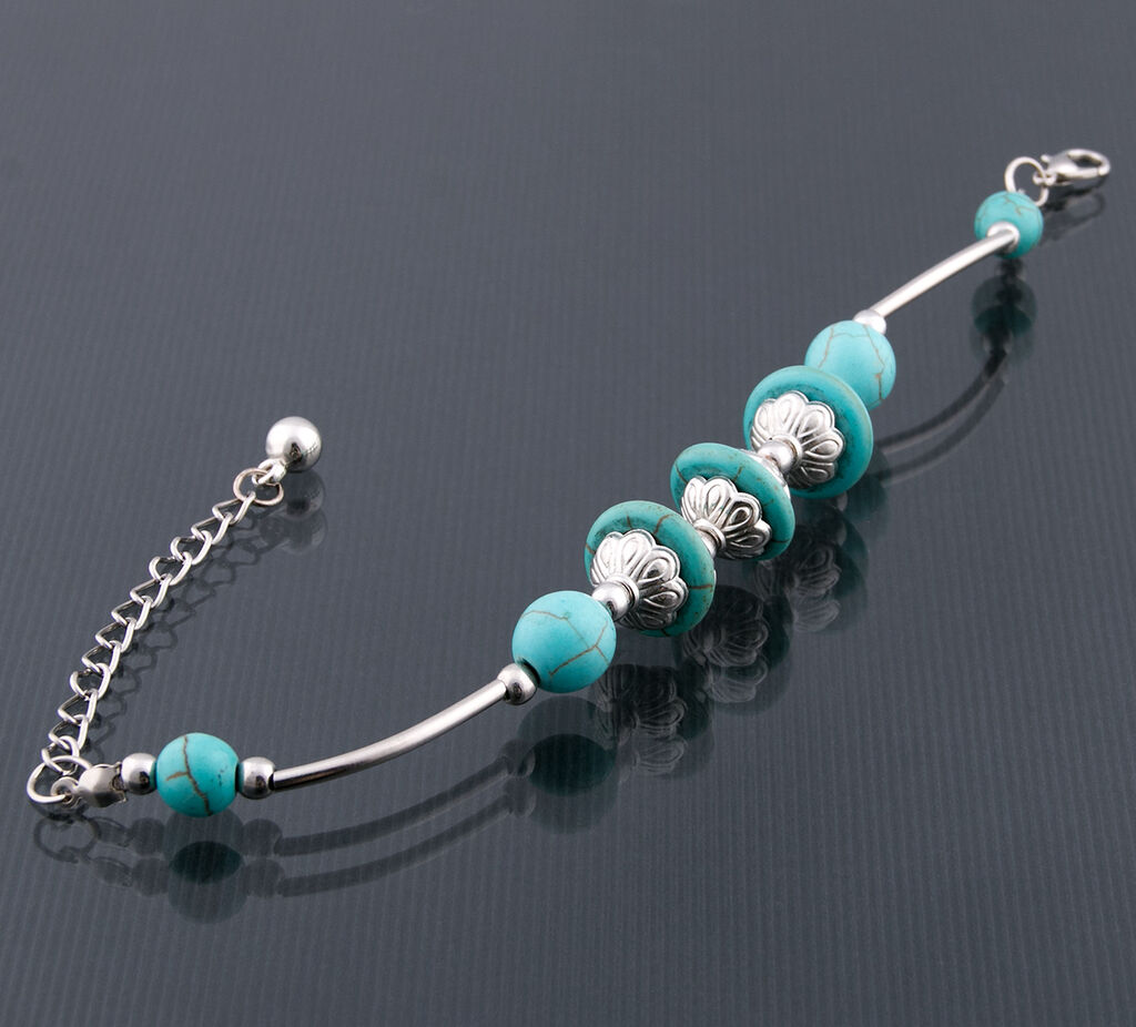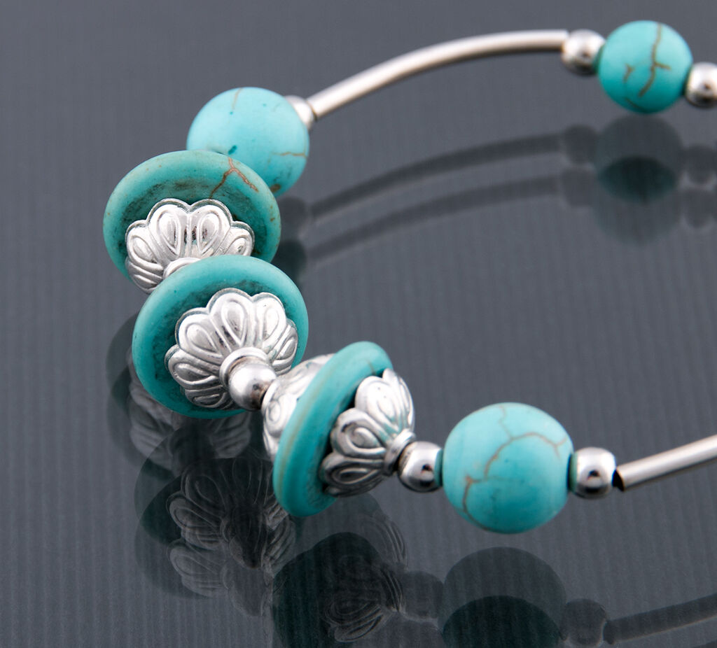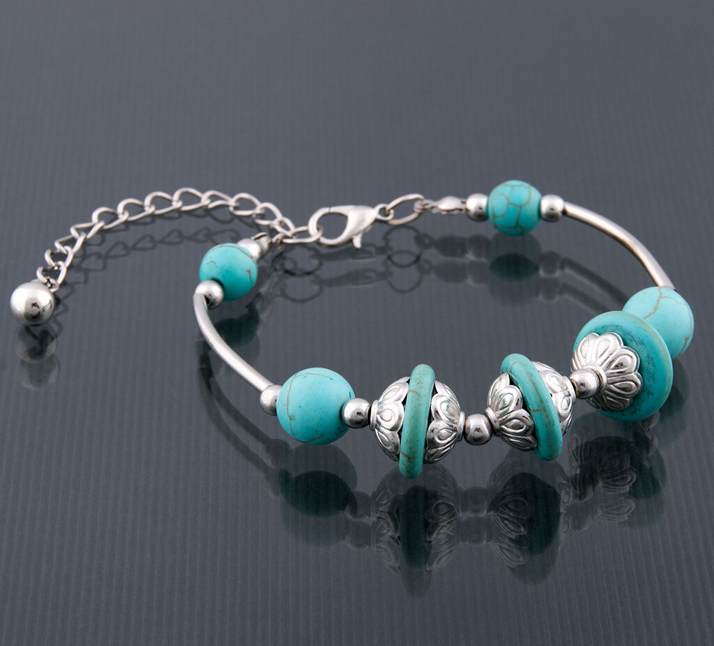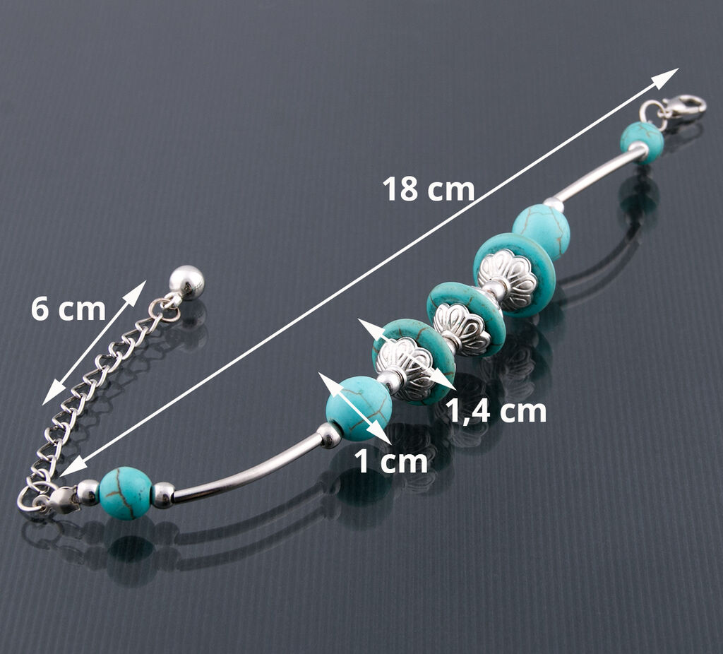 Náramek s tyrkenitovými korálky a ozdobami je skvělým doplňkem k jakémukoliv outfitu. Náramek je vhodným doplňkem pro ženy s citem pro eleganci a oblibou výrazných šperků.