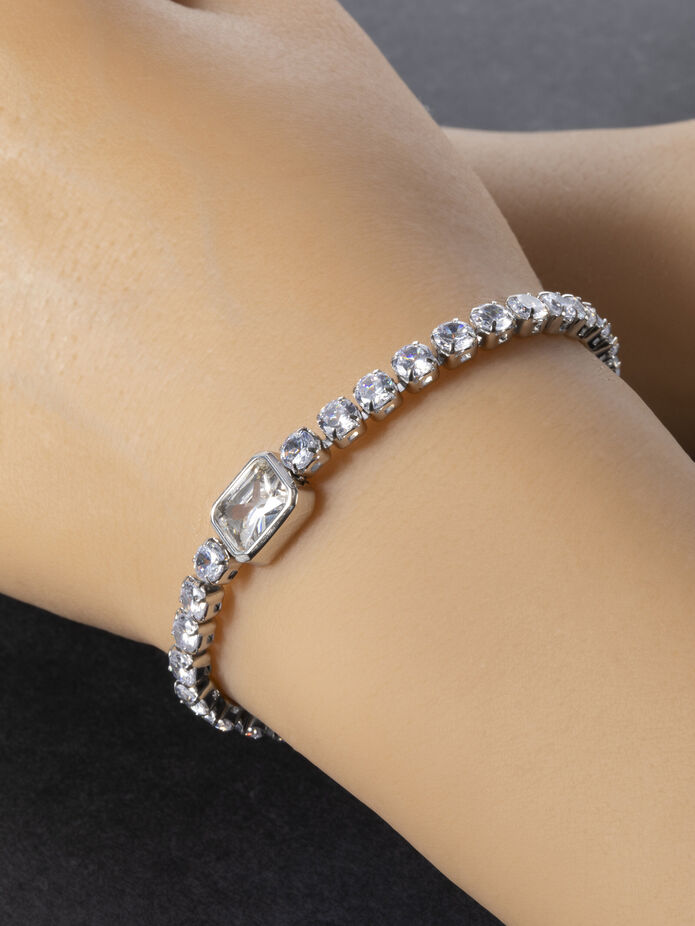 Náramek z chirurgické oceli s krystalky stříbrná