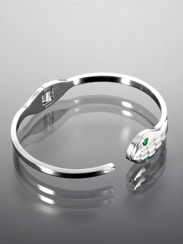 Náramek je z chirurgické oceli, která nemění barvu a je hypoalergenní. Náramek je v podobě hada, který je osazen krystalky. Udělejte si i vy radost s tímto stylovým doplňkem!
