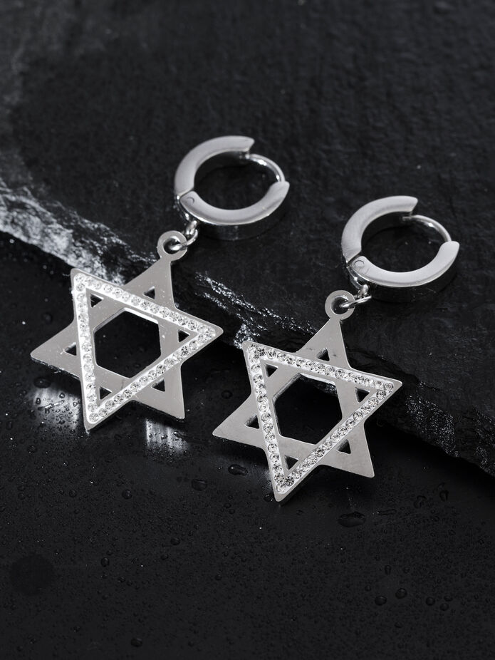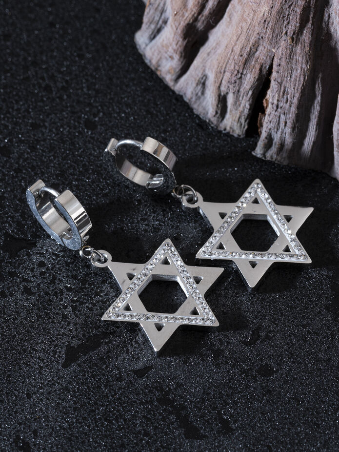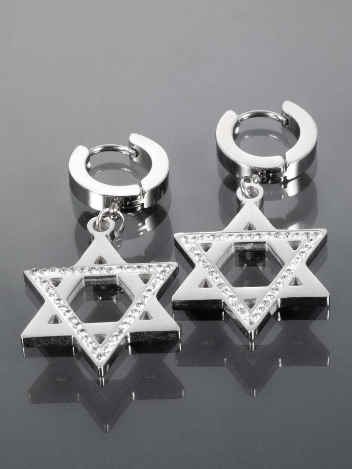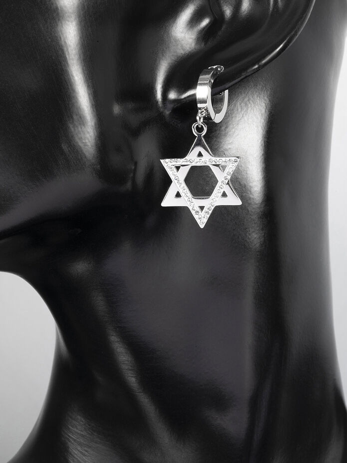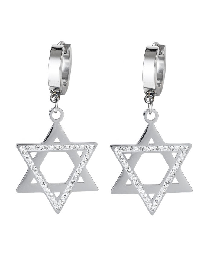 Tyto kouzelné náušničky si zamilujete! Náušnice jsou z chirurgické oceli, která nemění barvu a je hypoalergenní. Na náušničkách je vzor Davidovy hvězdy s osazením krystalky. Udělejte si i vy radost tímto krásným doplňkem!