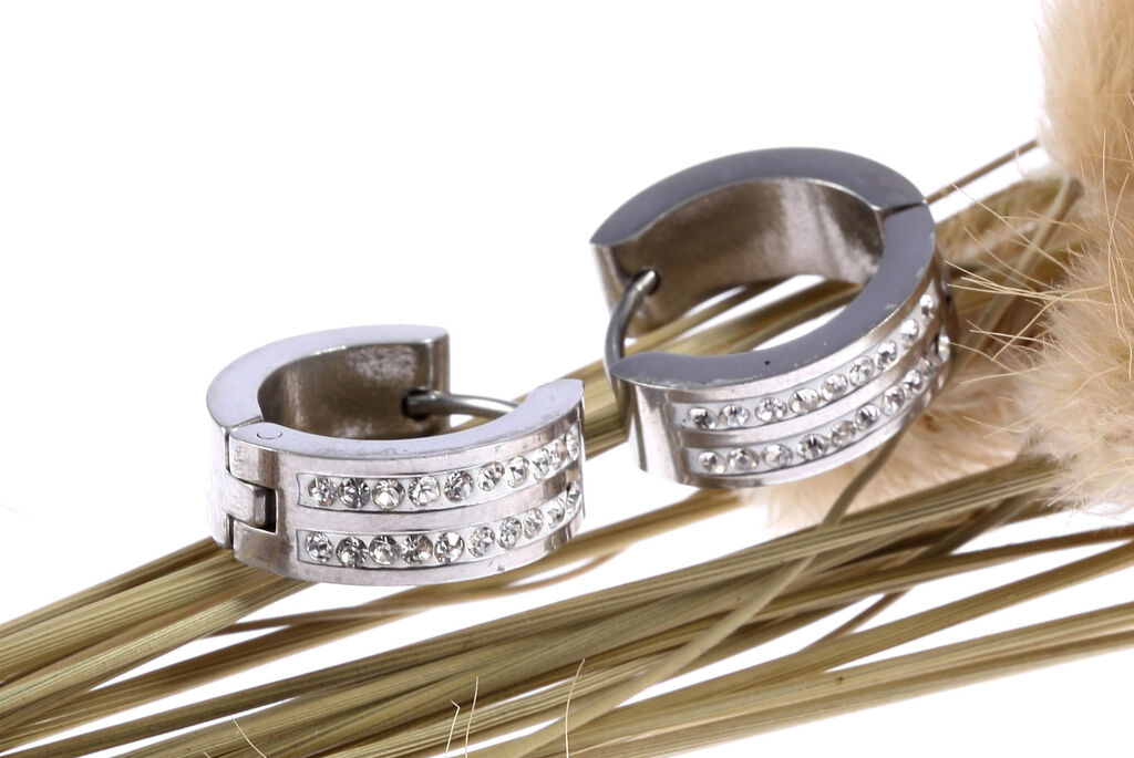 Náušnice z chirurgické oceli ve tvaru kroužků s dvěma řadami drobných krystalků jsou exkluzivním šperkem pro každou příležitost.