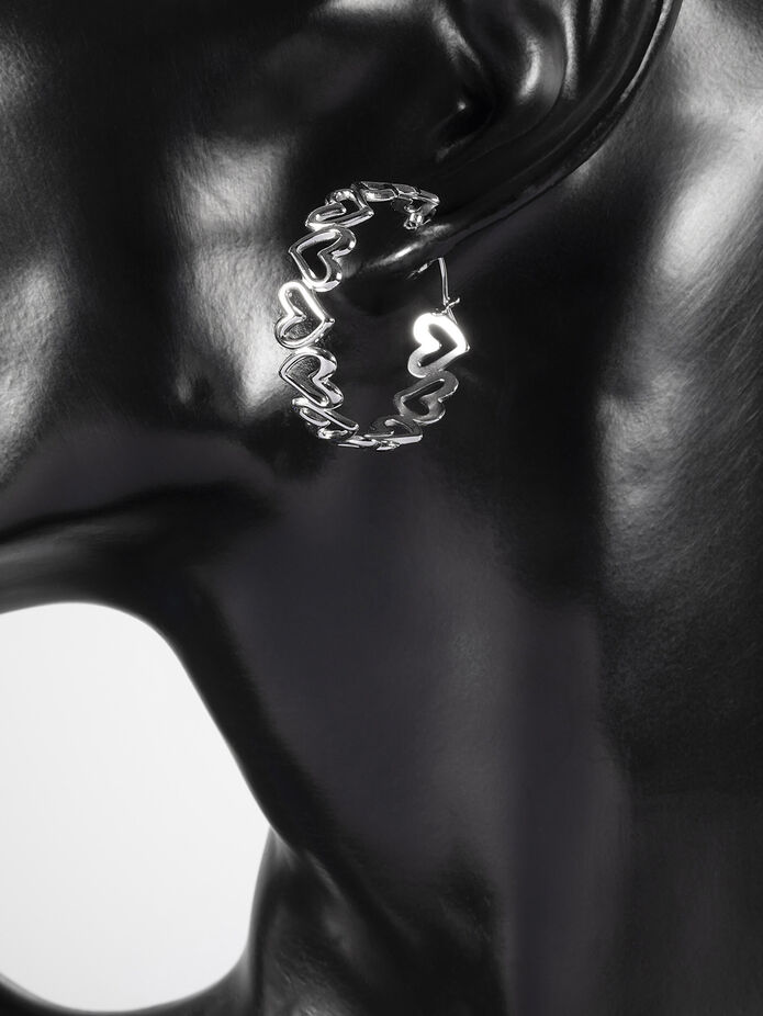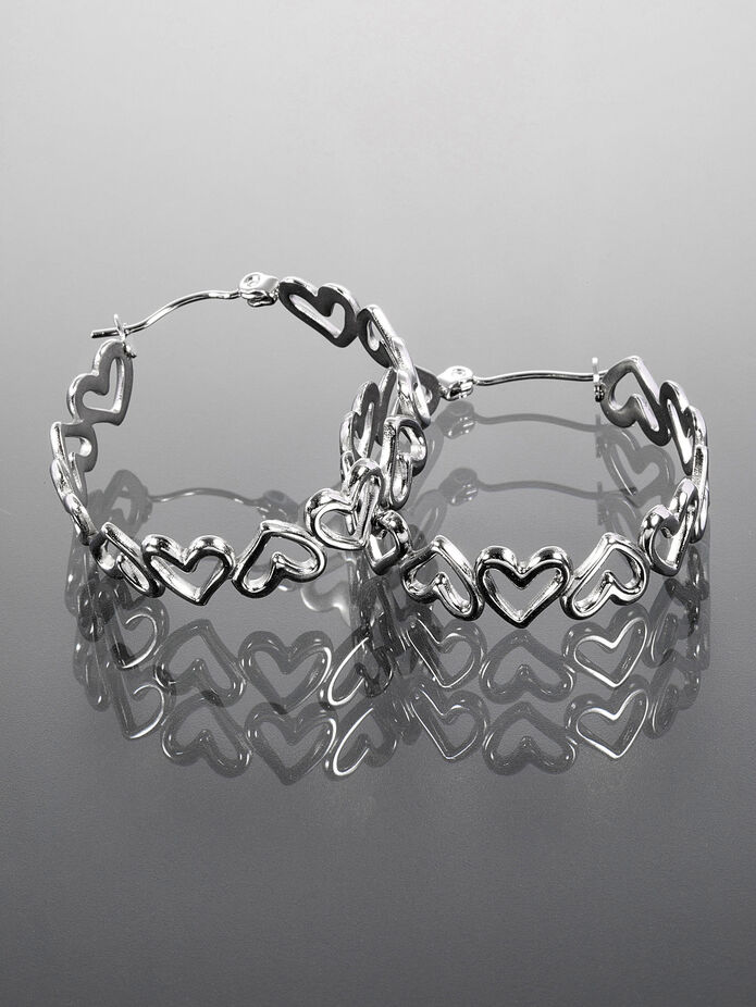 Náušničky jsou z chirurgické oceli, která nemění barvu a je hypoalergenní. Náušničky jsou typu kruhů se srdíčky. Zapínání náušniček je na puzetku. Udělejte si i vy radost tímto elegantním kouskem!