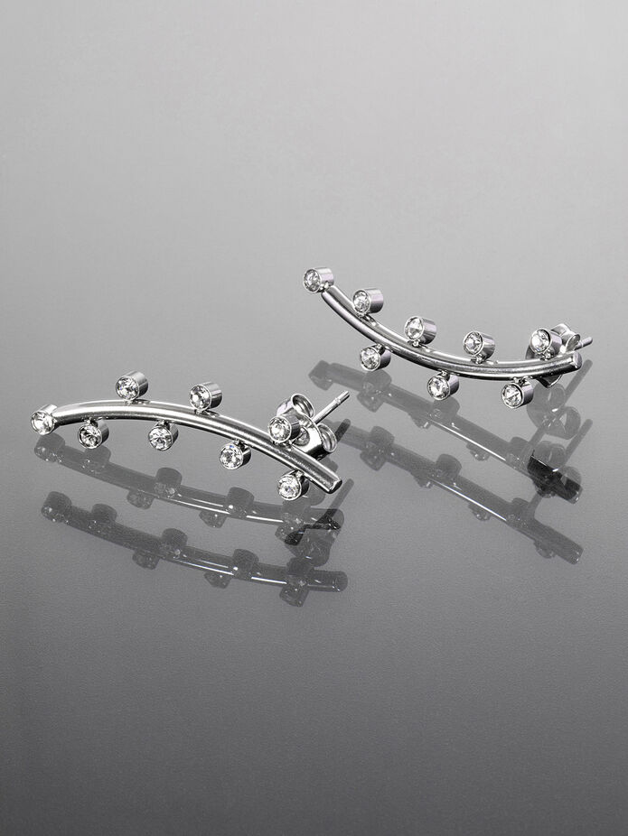 Tyto náušničky oživí každý váš outfit svým zajímavým vzhledem! Náušničky jsou z chirurgické oceli, která nemění barvu a je hypoalergenní. Náušničky jsou zdobeny krásnými krystalky a mají zapínání na puzetku. Udělejte si i vy radost tímto kouzelným šperkem!