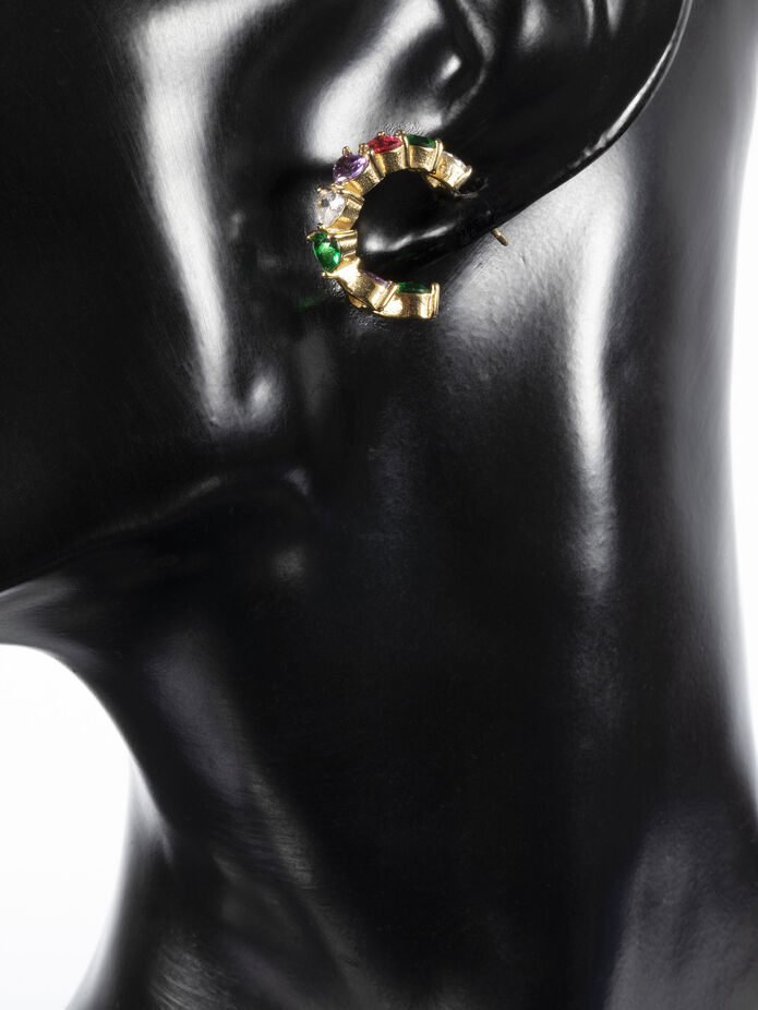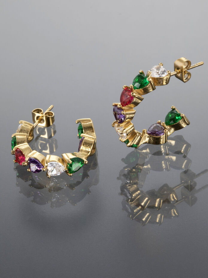Tyto kouzelné náušničky si jednoduše zamilujete. Náušničky jsou v podobě srdíček z barevných krystalků. Zapínání je na puzetku. Udělejte si i vy radost tímto šperkem, který oživí každý outfit.