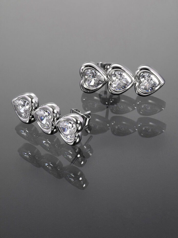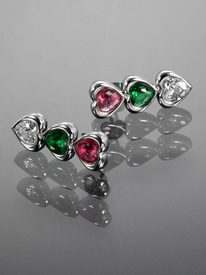 Náušničky jsou z chirurgické oceli, která nemění barvu a je hypoalergenní. Náušničky jsou ze srdíček, která jsou osazena krystalky různých barev. Náušničky mají zapínání na puzetku. Udělejte si i vy radost tímto elegantním kouskem!