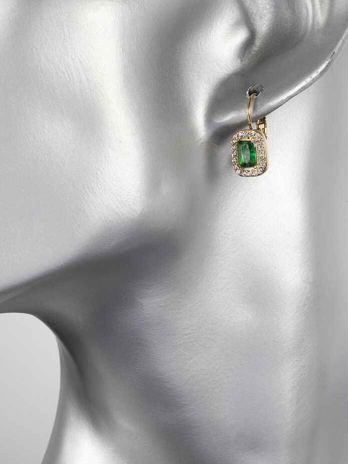Tyto stylové náušničky si zamilujete. Náušničky jsou z chirurgické oceli, která nemění barvu a je hypoalergenní. Náušničky jsou zdobeny krásnými zelenými krystalky. Zapínání náušniček je na dámský patent. Udělejte si i vy radost tímto nadčasovým šperkem!