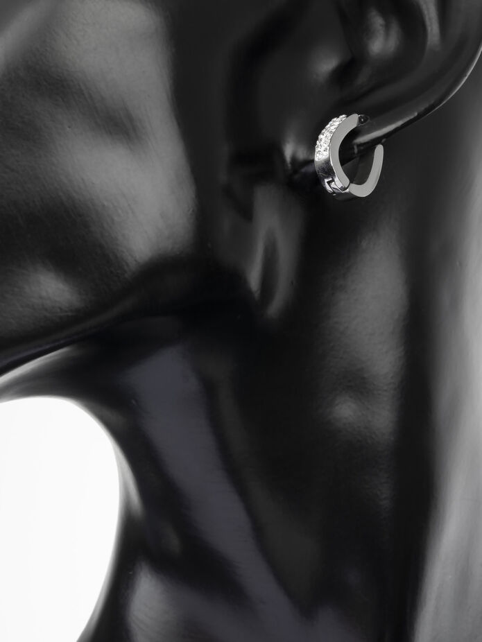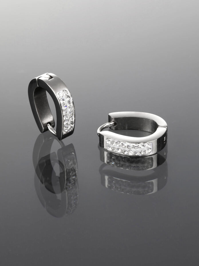 Kouzelné, jednoduché náušnice typu kruh z chirurgické oceli. Chirurgická ocel nemění barvu a je hypoalergenní, tvoří tedy ideální materiál pro šperky. Náušnice jsou v ocelové barvě a zdobí je krásné osazení krystalky. Zapínání náušnic je jednoduché a pevné. Dopřejte si i vy tento kouzelný nadčasový kousek, který doplní každý outfit!