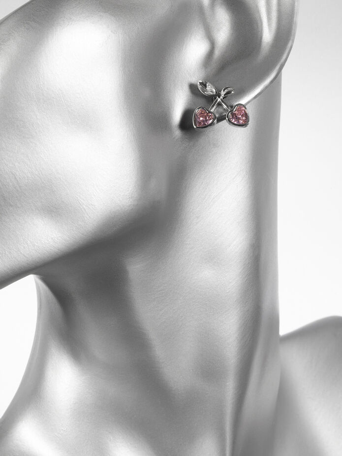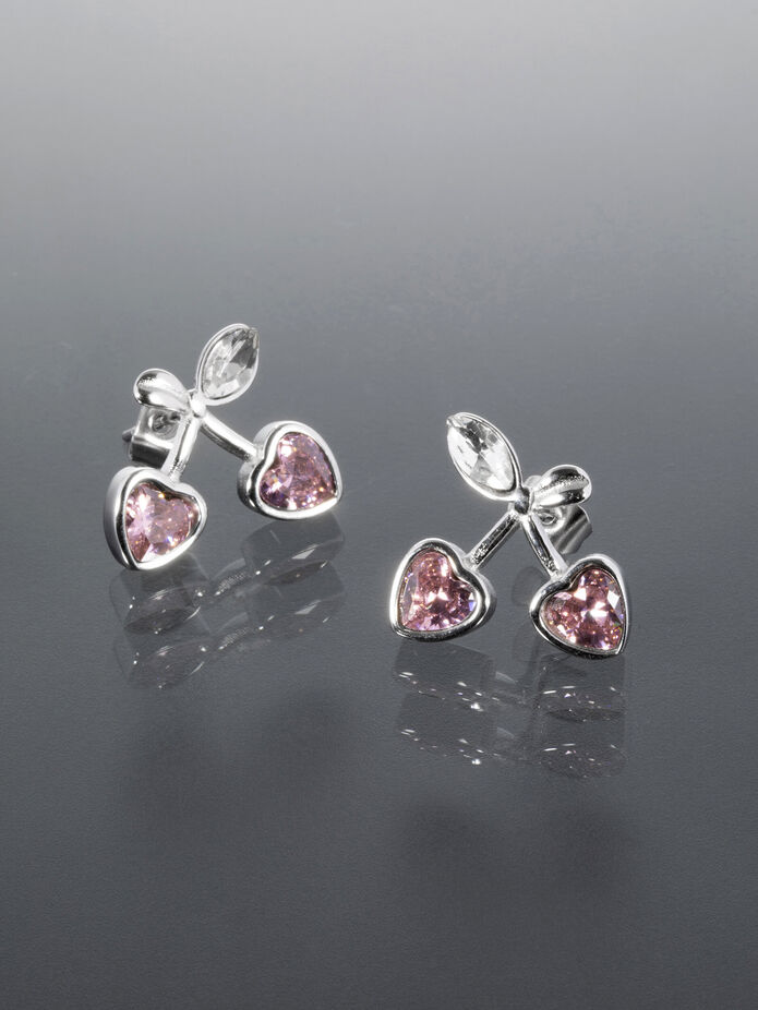 Tyto kouzelné náušničky stylově doplní každý váš outfit. Náušnice jsou z chirurgické oceli stříbrné barvy a mají tvar třešní se srdíčky osazenými růžovými krystalky. Zapínání náušnic je na puzetku. Udělejte si i vy radost tímto jedinečným kouskem!