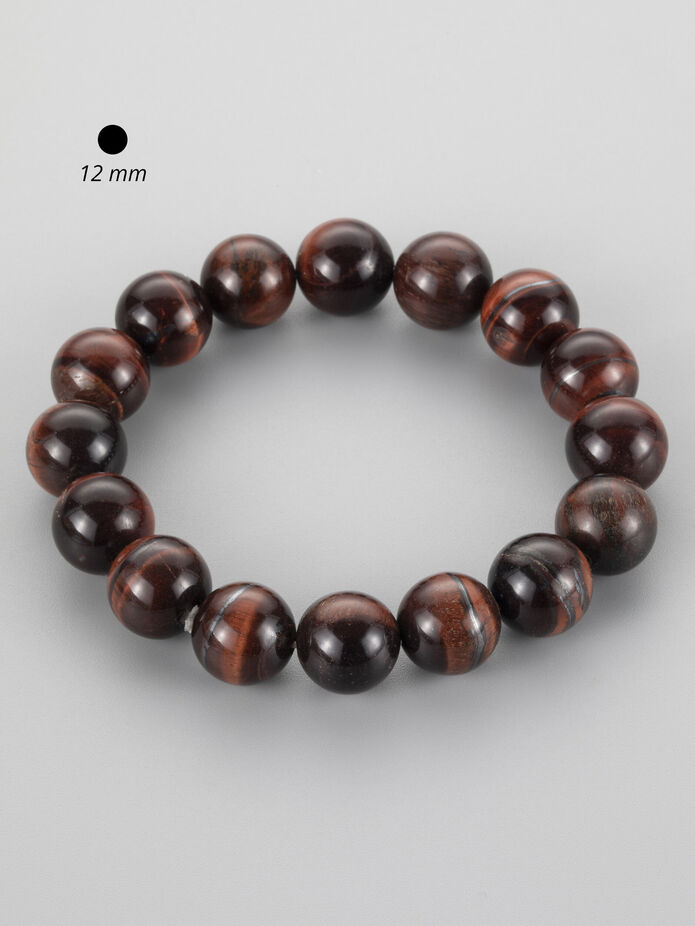 Nápadný náramek z kuliček býčího oka, délka 18cm, průměr korálků 1,2 cm. Korálky jsou navlečeny na elastenové niti, proto skvěle drží na ruce a jemně pruží.Tento náramek svými odstíny hnědé barvy a příjemným leskem dodá každému outfitu jedinečný vzhled. Hodí se jak na zvláštní příležitosti, tak na denodenní nošení. Zaujme každou ženu, zajímající se o ezoteriku a alternativní způsoby léčení.
