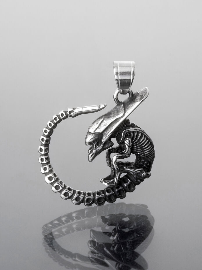 Nápadný přívěsek z chirurgické oceli, která nemění barvu a je hypoalergenní. Přívěsek má velikost cca 4 x 3 cm, je precizně zpracován do tvaru bájného netvora.