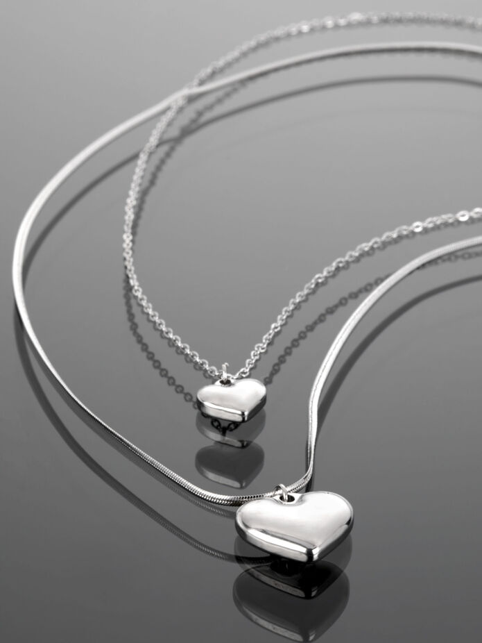 Náhrdelník z chirurgické oceli se dvěma srdci je moderním a elegantním doplňkem hodícím se ke každému outfitu. Srdíčka jsou velká 1 a 1,5 cm.