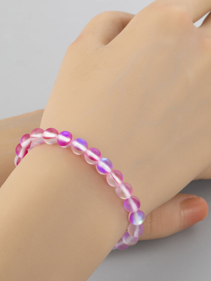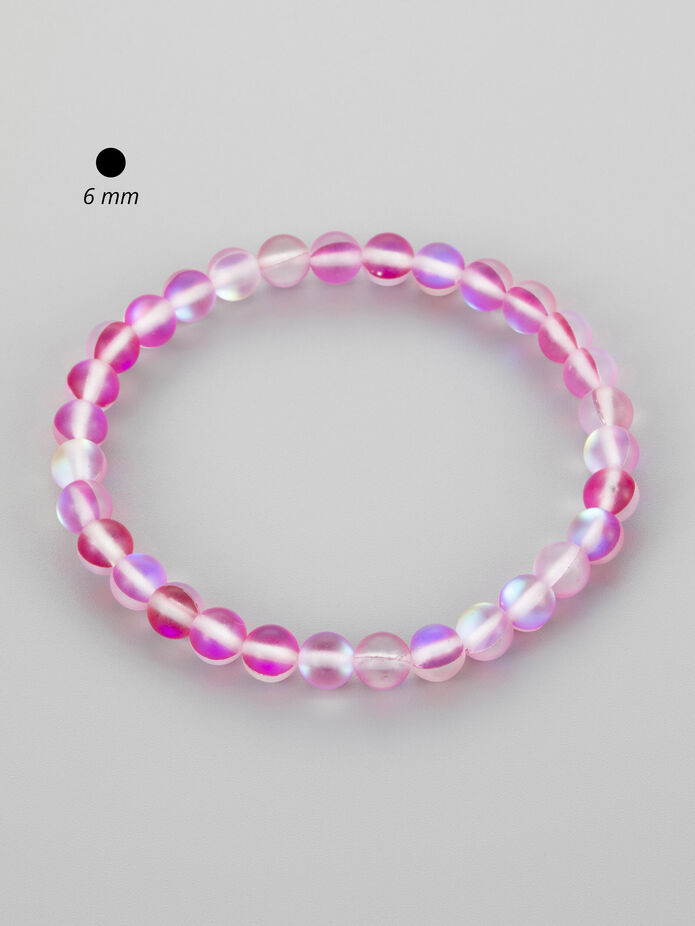 Okouzlující tmavě růžový náramek z korálků aqua aura, délka 18cm, průměr korálků 0,6 cm. Navlečeno na elastanové niti, proto náramek decentně pruží a skvěle drží na ruce. Tento náramek svou nenápadnou elegancí dodá každému outfitu decentní, mladistvý a jedinečný vzhled.