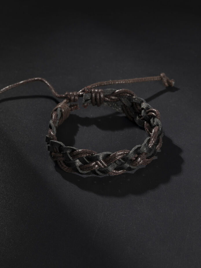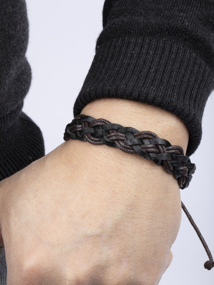 Tento stylový mužný náramek si zamilujete! Náramek je z černé a tmavě hnědé kůže. Zápínání náramku je na posuvný uzel. Tento náramek svým jednoduchým, stylovým vzhledem krásně doplní každý váš outfit. Udělejte si tímto doplňkem radost i vy!