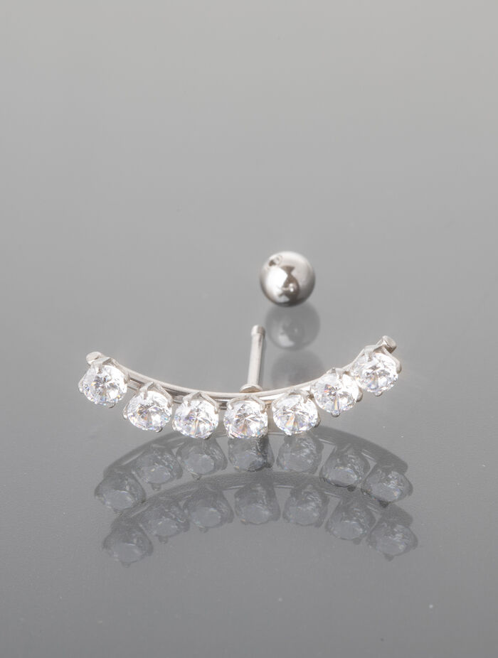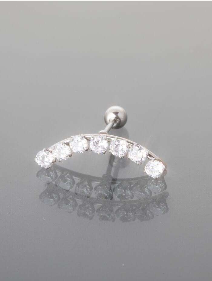Elegantní piercing určený pro helix, tedy horní část ušního boltce, zaujme jemným třpytem a precizním zpracováním. Piercing má tvar ohnuté tyčinky o délce cca 2,2 cm, zakončené kuličkou se závitem, která zajišťuje pohodlné a bezpečné nošení.