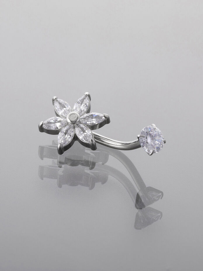 Elegantní piercing do pupíku vyrobený z kvalitní chirurgické oceli zaujme svým jemným leskem a třpytivými krystalky ve dvou velikostech. Lesklý povrch a precizní zpracování dělají z tohoto šperku skvělý doplněk pro každodenní nošení i slavnostní příležitosti.